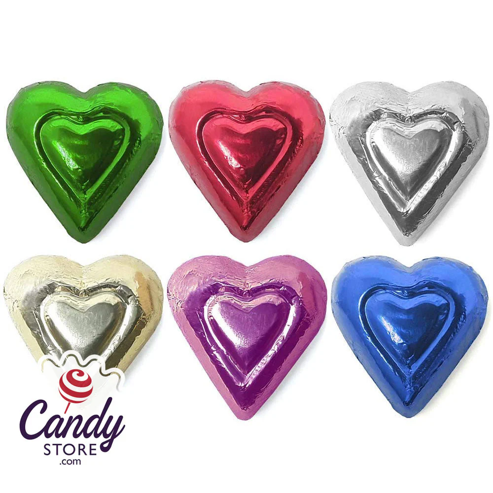 Rainbow Milk Chocolate Hearts from Madelaine come in a convenient 5lb bulk package, perfect for large gatherings and special occasions. Each solid milk chocolate heart is wrapped in vibrant Italian foil that showcases the full rainbow spectrum without any silver showing through.
